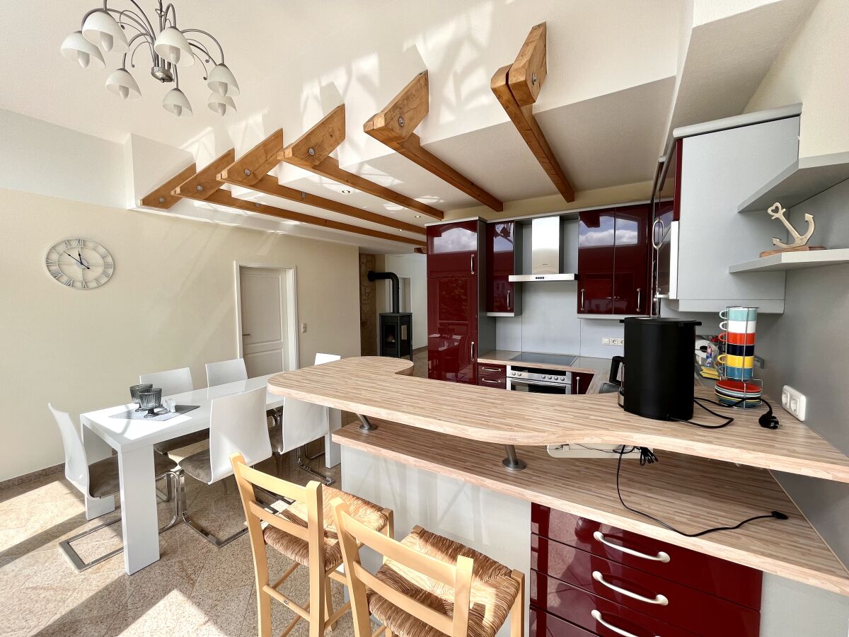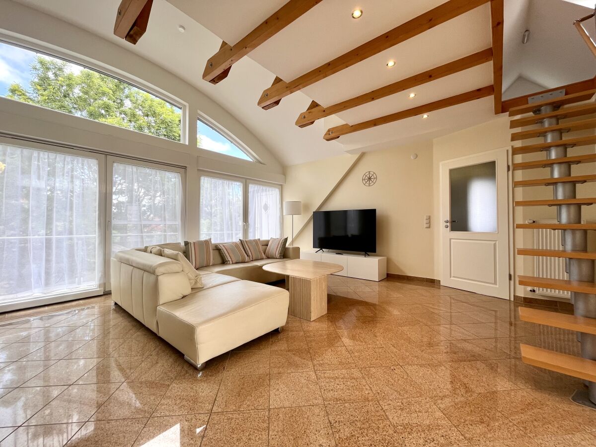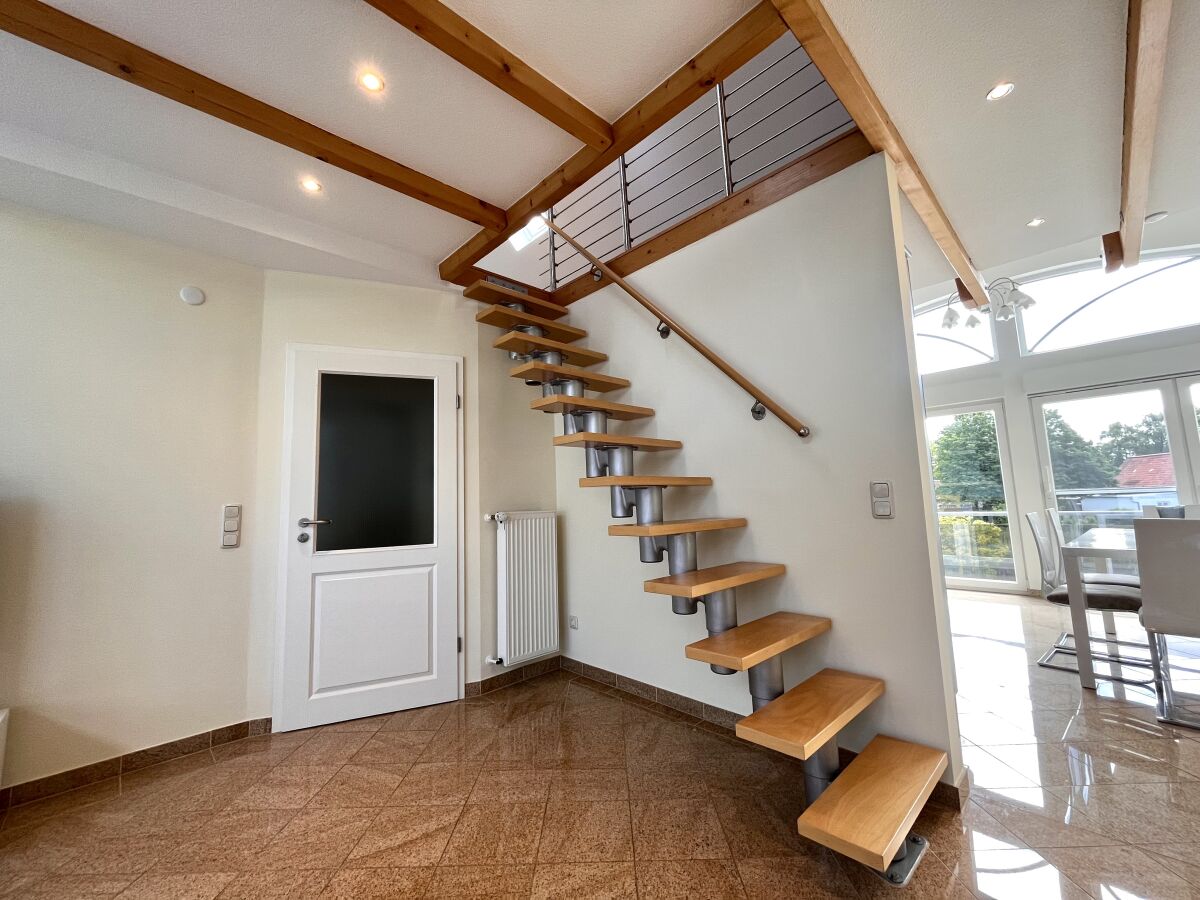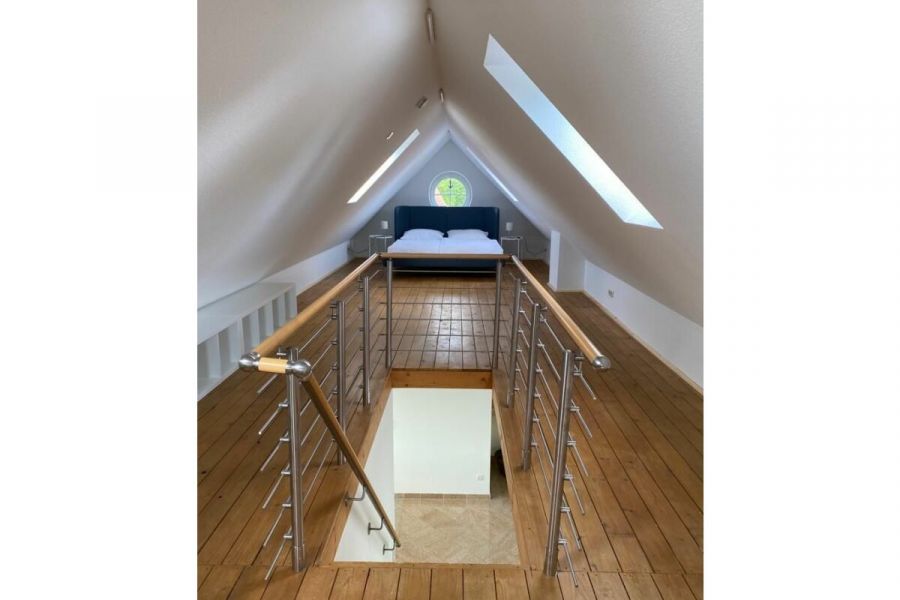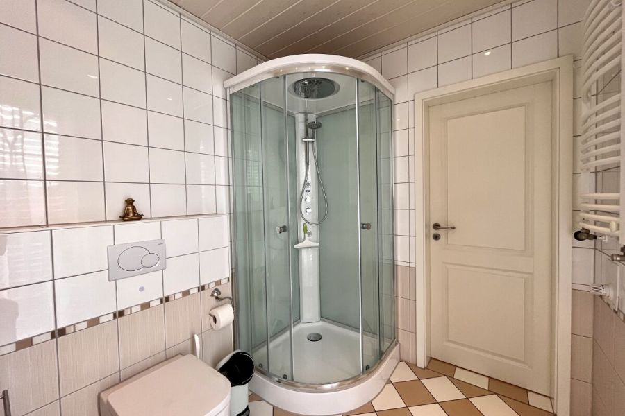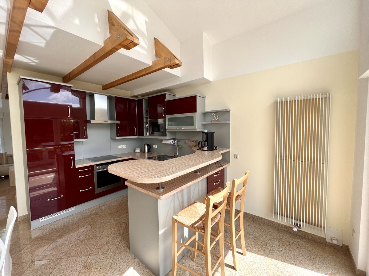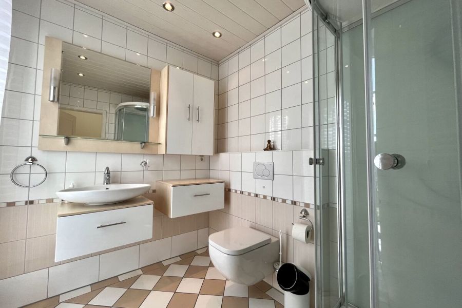 Die Wohnung ist in 2022 komplett neu renoviert worden und beherbergt in der ersten Etage, zwei Schlafzimmer. Diese sind jeweils mit einem großen Boxspringbett und einem TV- Gerät ausgestattet. Besonders hervorhebend ist hier, dass eines der zwei Schlafzimmer, ein eigenes Badezimmer mit Wellnessdusche und einem begehbaren Kleiderschrank verfügt. Von beiden Schlafzimmern aus, gelangen Sie auf den Balkon, der Ihnen einen einzigartigen Blick, auf den Hafen von Carolinensiel bietet. Für das Mobile Arbeiten im Urlaub oder dem Besuch der ganzen Familie, steht ein Büro und ein zweites Badezimmer mit Dusche, zur Verfügung. Das Schmuckstück der Wohnung, ist der Wohn- und Essbereich, mit offener Küche. Hier können Sie sich bei angestellter Fußbodenheizung oder am schönem Kaminofen, entspannen. Die Küche ist mit einer Spülmaschine, einer Mikrowelle und allem weiteren Utensilien eingerichtet, was man zur Bewältigung des Alltages benötigt. Vom Wohnbereich, der natürlich auch mit einem großen TV-Gerät ausgestattet ist, gelangen Sie auf den zweiten Balkon, der den Blick auf den Hinterhof des Hauses bietet. Der ausgebaute Spitzboden bietet Ihnen einen kleinen Ruhebereich mit bequemen Möbeln und ein Boxspringbett für zwei weitere Personen.
