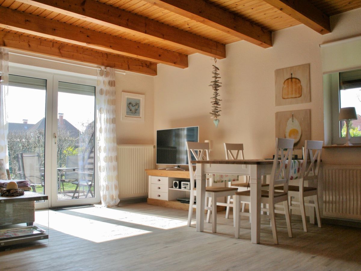 Im Erdgeschoss befindet sich der Wohn- und Essbereich mit TV und DVD-Player, die gut ausgestattete Küchenzeile und das Badezimmer mit Dusche. Die beiden Schlafzimmer, eines mit Doppelbett und eines mit zwei Einzelbetten, sowie ein Kinderreisebett und ein Gäste-WC mit Waschmaschine befinden sich im Dachgeschoss. Alle Schlafräume sind mit Außenjalousien ausgestattet. . Ein PKW-Stellplatz ist direkt am Haus.