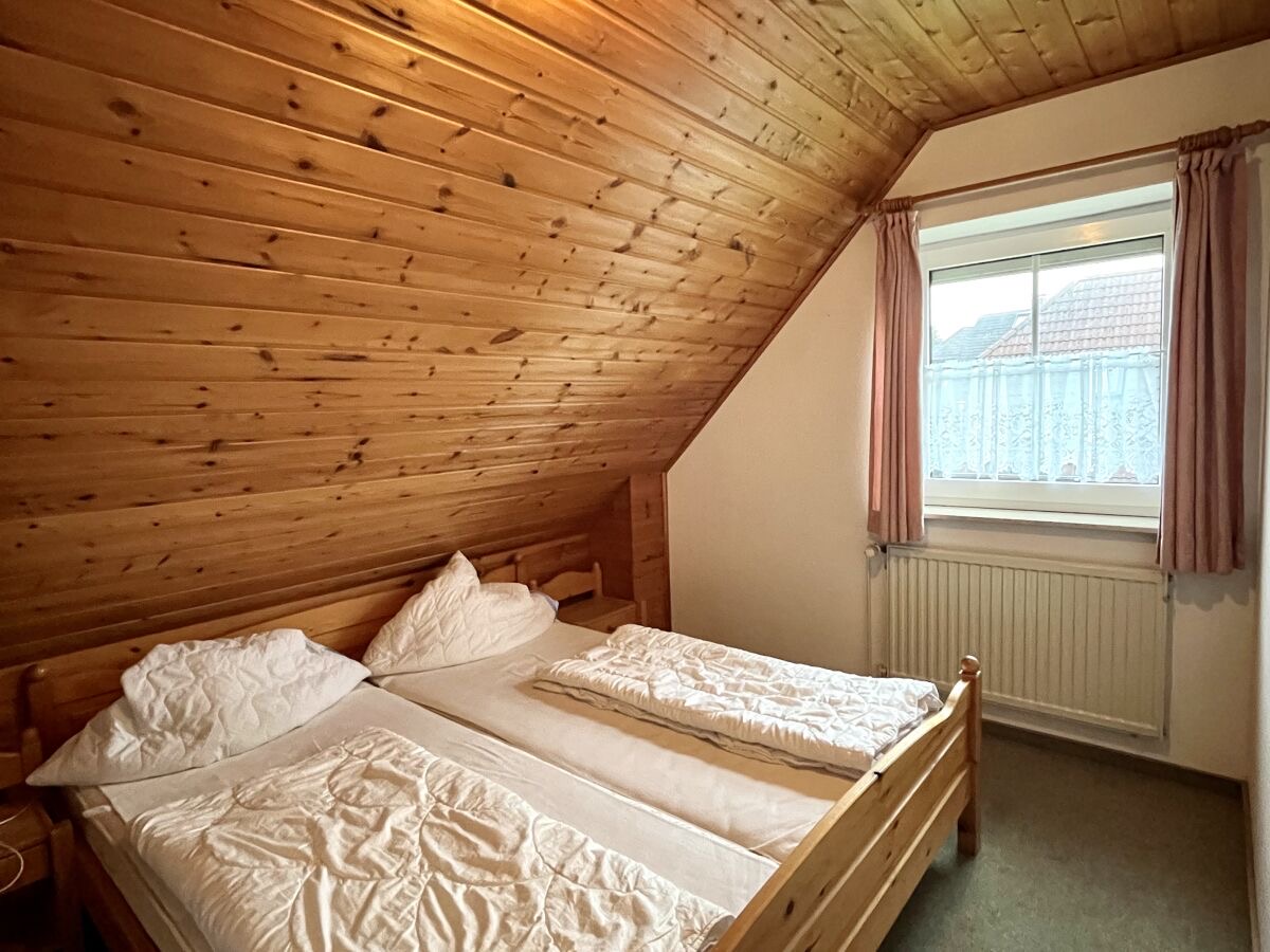 Im Obergeschoss gibt es 3 Schlafzimmer. Zwei Schlafzimmer sind mit Doppelbett und eins mit einem Etagenbett eingerichtet. Auch hier gibt es ein Badezimmer mit Dusche und WC.