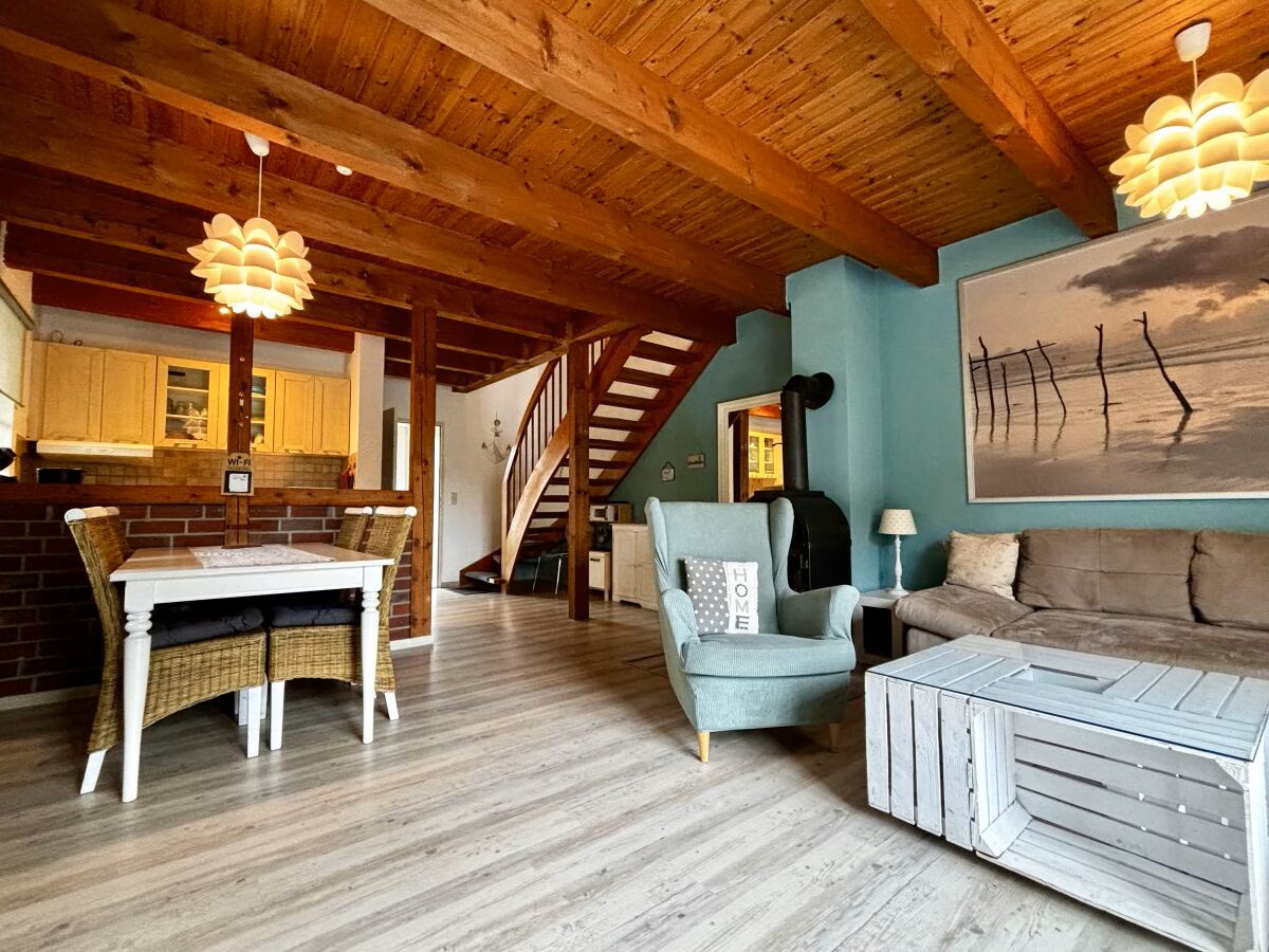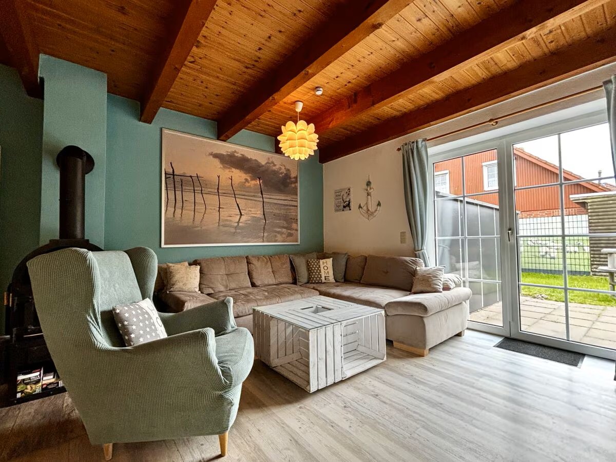 Das Ferienhaus „Friesenstorch“ ist eine toll eingerichtete Doppelhaushälfte mit einer Wohnfläche von ca. 65m². Im Erdgeschoss befinden sich der Wohn- und Essbereich mit offener Küche und direktem Zugang auf die Terrasse, und das Badezimmer mit Waschmaschine. Der Kaminofen im Wohnbereich sorgt in den kalten Wintermonaten für eine reichlich Wohlfühlatmosphäre. Über eine Holztreppe gelangen Sie in das Dachgeschoss des tollen Ferienhauses. Hier steht Ihnen ein Schlafraum mit einem Doppelbett und weiteres Schlafzimmer mit Einzelbett und einem Tandembett (für 2 Personen) zur Verfügung. Für kleinere Kinder haben wir einen Kinderhochstuhl, einen Wickeltisch und ein festes Kinderbett. Das Ferienhaus hat einen eingezäunten Garten mit Terrasse, nebst Gartenmöbeln.
