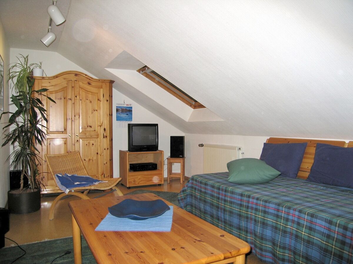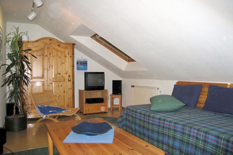 Im Wohn-/Schlafraum mit zwei Einzelbetten auf der oberen Etage stehen Ihnen ebenfalls TV und eine HiFi-Stereoanlage zur Verfügung. Außerdem gibt es im Erdgeschoss ein Doppelschlafzimmer und eines mit Etagenbett. Ein Wannen- und ein Duschbad bieten Komfort und Freiraum. Auf der Süd-Terrasse können Sie den Sommer genießen. Es gibt einen kostenlosen Strandkorb am Familienstrand.
