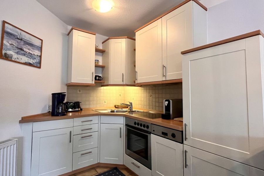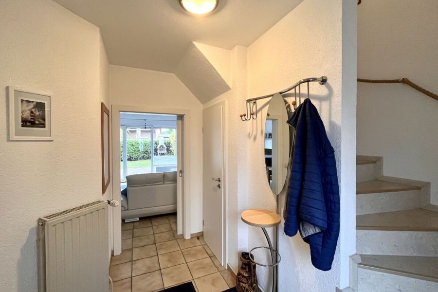 Das Ferienhaus „Josie“ ist ein Reihenmittelhaus mit ca. 80 m² Wohnfläche. Das Erdgeschoss ist wie folgt aufgeteilt: offener Wohn- und Essbereich gut ausgestatteter Einbauküche und Zugang auf die Terrasse mit Grillkamin, Gäste-WC mit Waschmaschine und Flur. Im Wohnbereich steht Ihnen ein Flachbildfernseher zur Verfügung. Auch die sehr gut ausgestattete Küche lässt keine Wünsche offen. Über eine Treppe gelangen Sie in das Dachgeschoss des Hauses. Hier befinden sich das Elternschlafzimmer mit großem Doppelbett, Kleiderschrank und Fernseher, ein Kinderzimmer mit zwei Einzelbetten und Kleiderschrank, ein Badezimmer mit Dusche und ein Abstellraum.