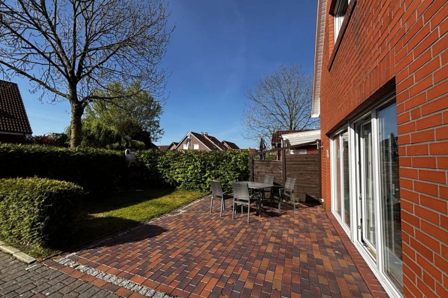 Im Außenbereich des Ferienhauses steht Ihnen ein Garten mit Terrasse, einem Außenschuppen für Fahrräder und ein Grillkamin zur Verfügung.